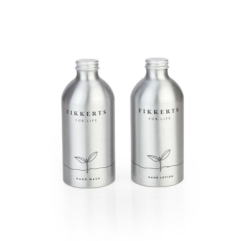 The bottles are made from 100% recyclable aluminum and presented in a box made from recycled pulp and banded with FSC approved card.