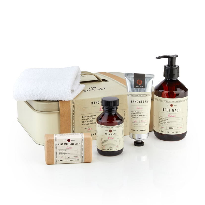 Rose Tin Gift ( Hand & Body Wash, Hand Cream, Foam Bath, Soap and Flannel)